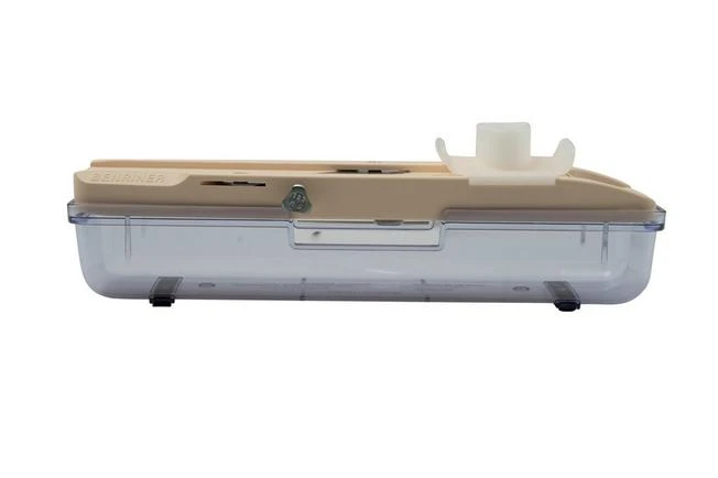 With the Benriner Catch mandolin you can easily slice your vegetables or cut them into julienne strips. The Catch is made from ivory-coloured plastic and features a practical and hygienic collection tray.