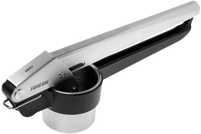 With the GEFU Force One potato press you can easily make mashed potatoes. Put the potato inside and squeeze the whole shut. Due to the lever mechanism this will be effortless. The curved handle reinforces the lever and feels perfect in hand. In addition to mashed potatoes you can also use this press to make smoothies.