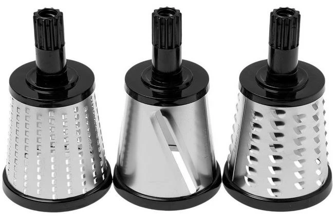 With this GEFU Transforma Rotary Grater you can easily grate vegetables, fruit and nuts. The grater comes with three different drums. ‘LASER CUT’ so extra sharp. For fine flakes, coarse gratings or thin slices!