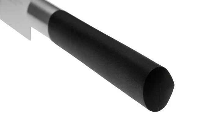 This Kai knife set is comprised of three knives from the Wasabi collection. Kai is known for its high-quality Kai Shun kitchen knives. With this Kai Wasabi collection, this high quality is now also available for a more affordable price. The stainless steel blade made from Daido 1K6 steel has a thin grind and is hardened to a hardness of 58 HRC. Because the knife doesn’t have a crop you can use the entire edge. This also makes it easier to sharpen. The handle is made of a combination of bamboo powder and polypropylene. This makes the handle sustainable and waterproof.