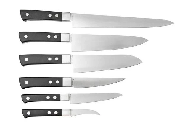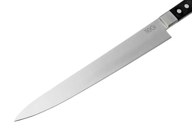 The Maserin TEGI 2500TG02-N 6-piece kitchen knife set, black is a set with different stylish kitchen knives. From a long sujihiki to a small turning knife, with this knife set you will have the right knife at your disposal for every single task in the kitchen. This set comes with bag and six knife guards.