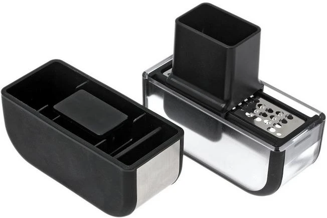 The Microplane Garlic Cutter is a convenient garlic grater with which you, obviously, grate garlic. The nice thing about it is you are not risking your fingers in the process. With old-fashioned garlic presses you have to put a lot of pressure on it. This grater works differently. You slide the lid back and forth against the grater. At the same time you move the garlic along the grater and your fingers do not come close to the grating.
