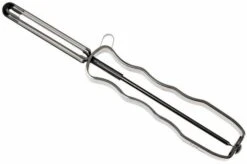 This Microplane Master truffel tool is razor-sharp combination of a grater and a slicer. The steel frame has a wooden handle. American walnut was selected for this. This wood gives the grater a warm and luxurious look and feel. Because Microplane started out by making woodworking tools, this handle nicely represents a part of their history. This Master grater is really the most masterful grater from the Microplane range.