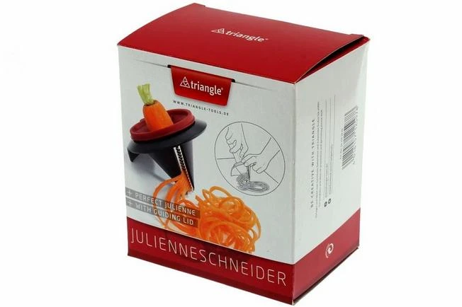 With the Triangle spiral cutter you turn vegetables such as courgette, cucumber, carrot and many others into beautiful, thin vegetable strips. Also called garlands. It is a great tool when making salads or garnishes.