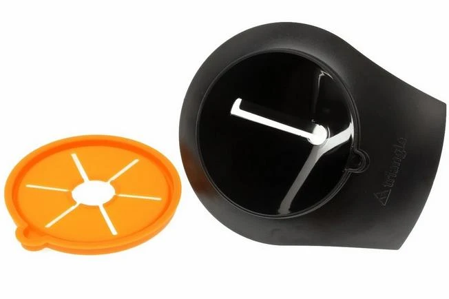With the Triangle spiral slicer you can cut beautiful, thin garlands of all elongated vegetables. The vegetables are turned through a kind of grinder and emerge as ‘vegetable garlands’.