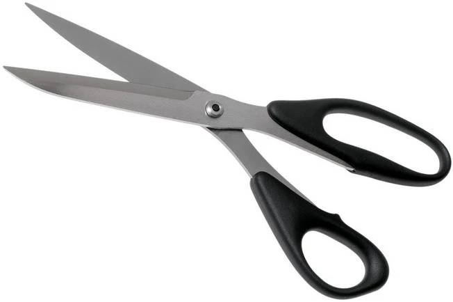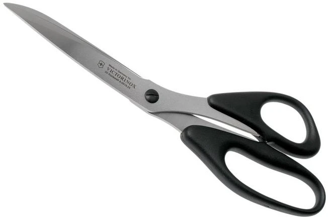 At 26 centimetres, these Victorinox tailor’s scissors are seriously long. This makes them highly suitable for cutting fabric. Tailor’s scissors also differ from other types of scissors in terms of design. The two eyes are asymmetrical, and you keep the elongated eye at the bottom while you use the scissors. This allows you to pull the scissors through under a large piece of fabric. Fabric scissors are often also a lot sharper, to make sure the edge won’t get caught behind the fabric and cause it to fray.