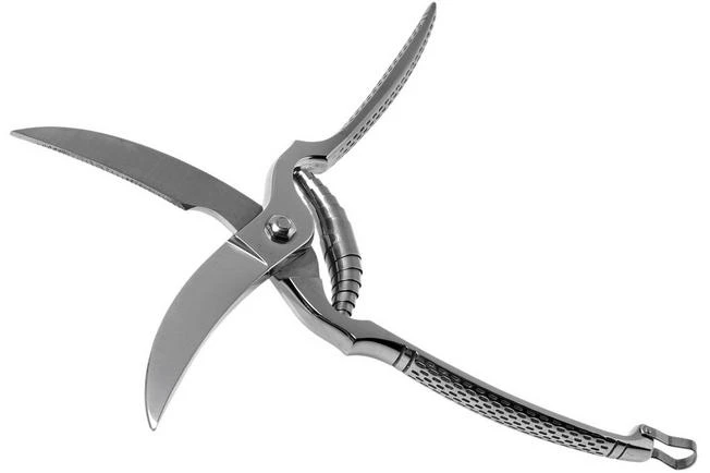 This pair of Wüsthof poultry scissors is a very practical kitchen aid for distributing chicken, turkey, goose or other poultry. Cutting off the breast, thighs and wings or cutting and portioning grilled or roasted poultry are all nasty chores without a good poultry scissors. With the Wüsthof scissors you easily cut through bones, without leaving any splinters in the meat.