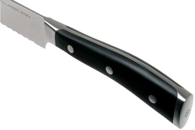 The Wüsthof Classic Ikon bread knife, 23 cm has extra small serrations to make sure you can quickly cut through any type of bread without leaving crumbs behind. From hard to soft crusts, from soft buns to baguettes, this knife will quickly cut through it. This all-round knife, however, can also cut through delicious pies or a large piece of celeriac.
