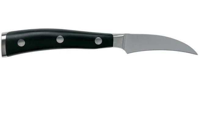 The Wüsthof Classic Ikon turning knife 7 cm is a perfect peeling or fruit knife. Because of the curve in the blade you can easily peel apples, oranges, radishes and all other round, juicy types of fruit and vegetables.