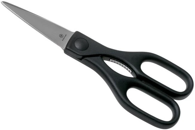 This pair of Wüsthof Grand Prix kitchen scissors is an indispensable and practical addition to each kitchen. Kitchen scissors are often more solid than standard household scissors. As such you can easily cut through solid packaging. This pair is also great when cutting through fish bones, herbs, flowers, rhubarb, foil, parchment paper, binding wire and much more.