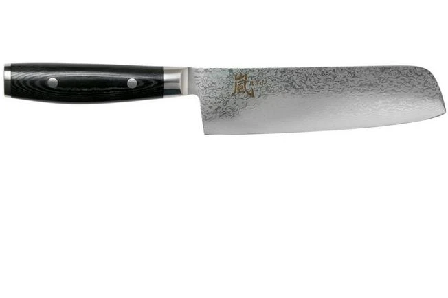 The Yaxell Ran Nakiri is a classic Japanese vegetable knife with a stunning design. The nakiri can be found in almost every Japanese kitchen. The high and square blade is great when quickly cutting vegetables, fruit and herbs. Because of the high blade you can safely guide the knife alongside your knuckles during use. This is, without a doubt, the knife you use to finely cut carrots, cucumber, cabbage and any other types of vegetables.